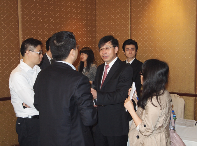 高亮總經(jīng)理與分析員在會(huì)場交流